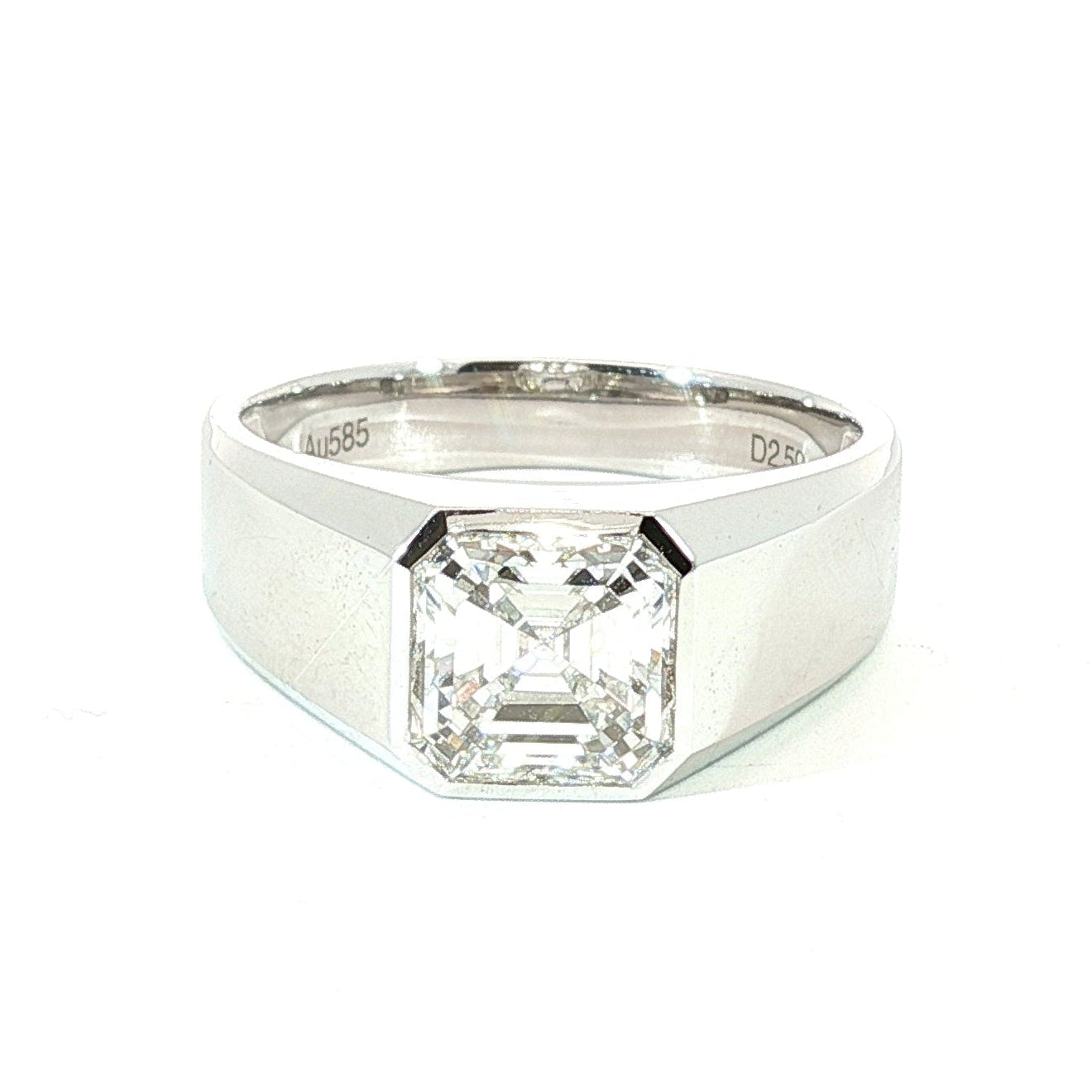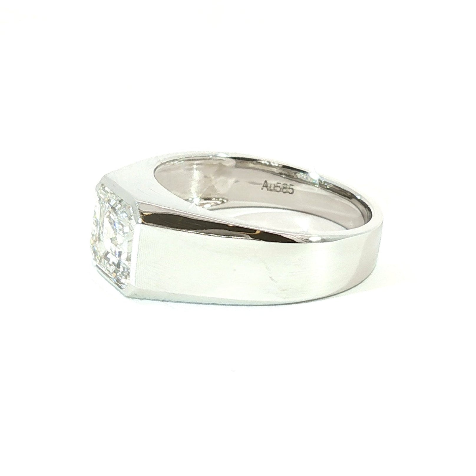 Striking clarity. Timeless edge. The Wilson Men’s Band with 2.59ct Asscher Cut brilliance in