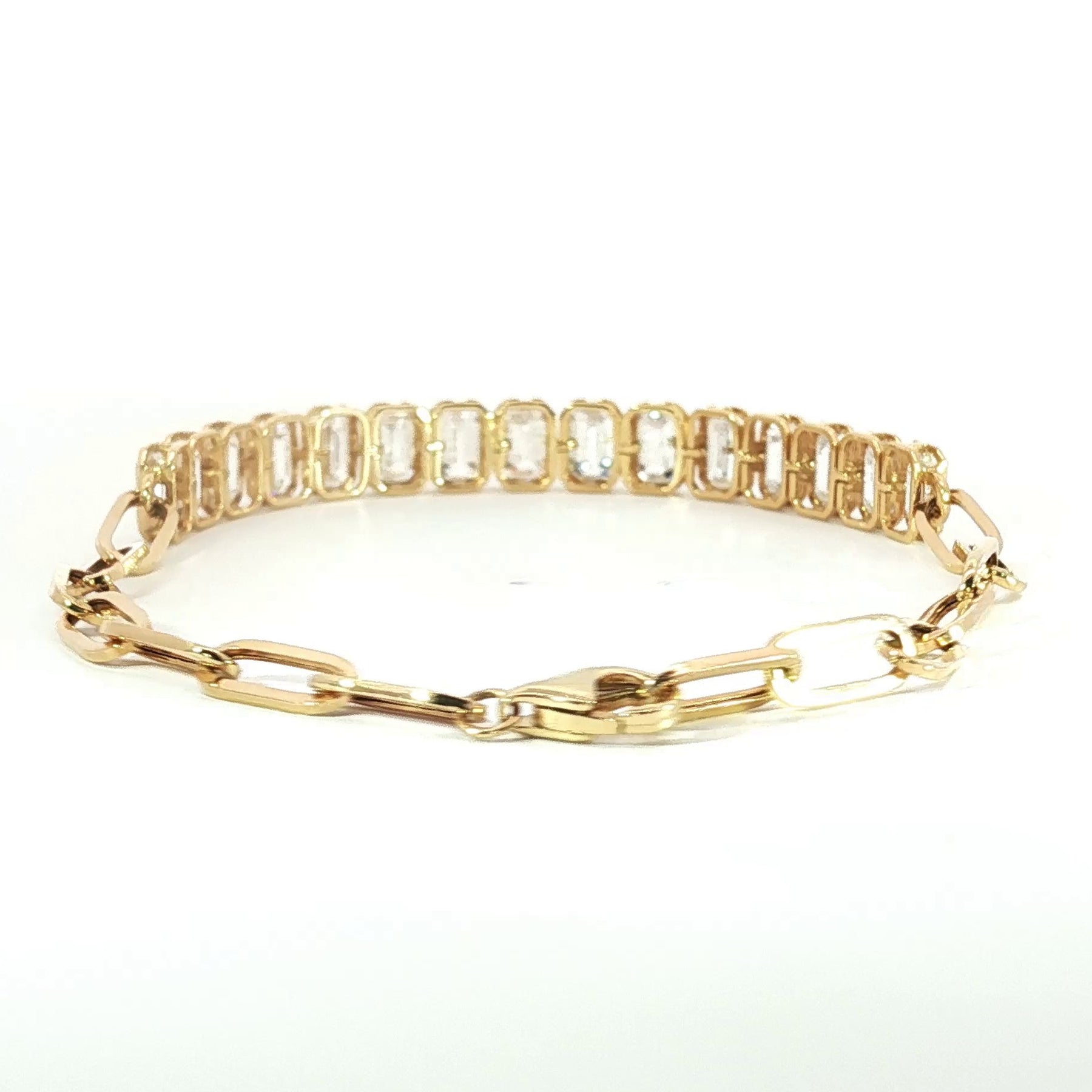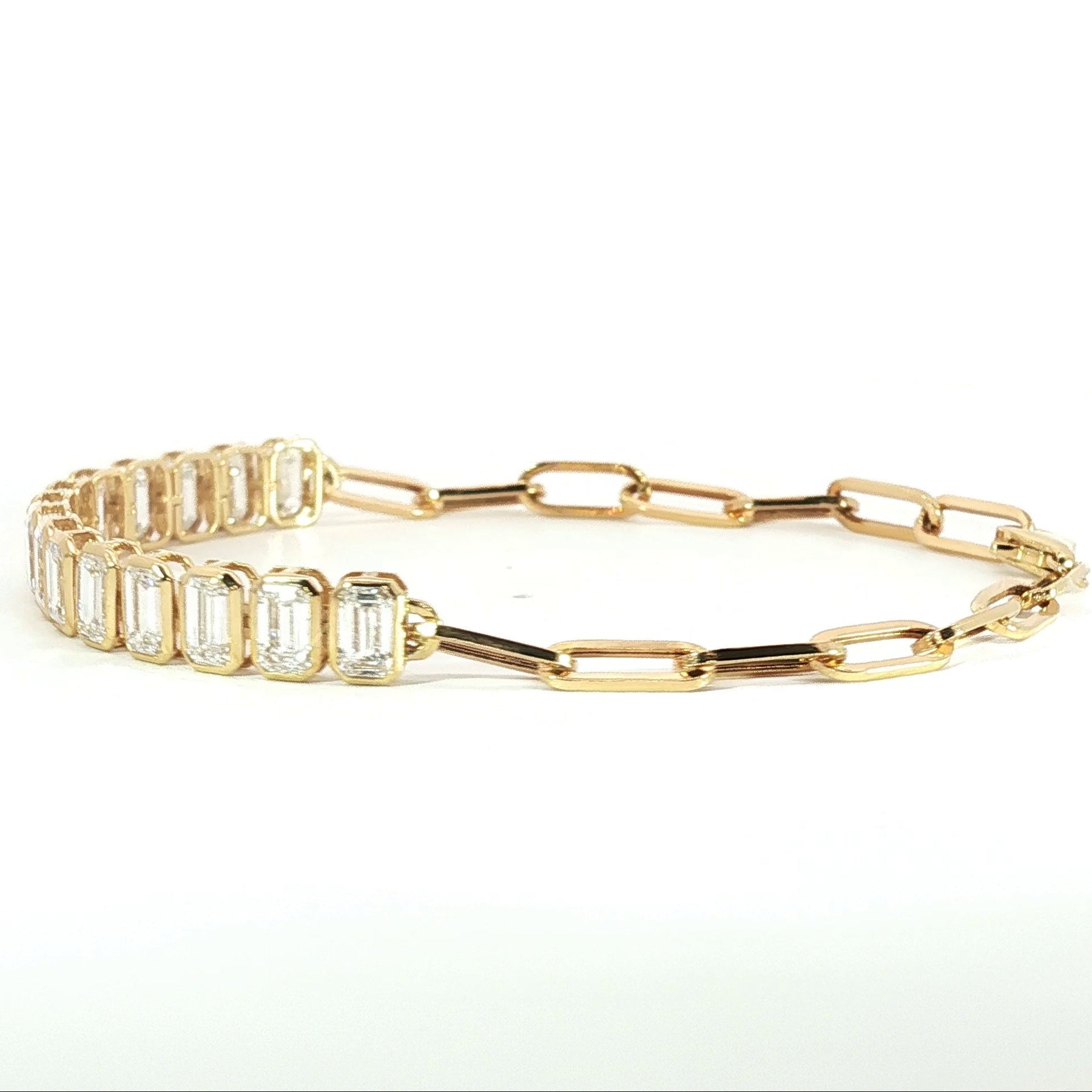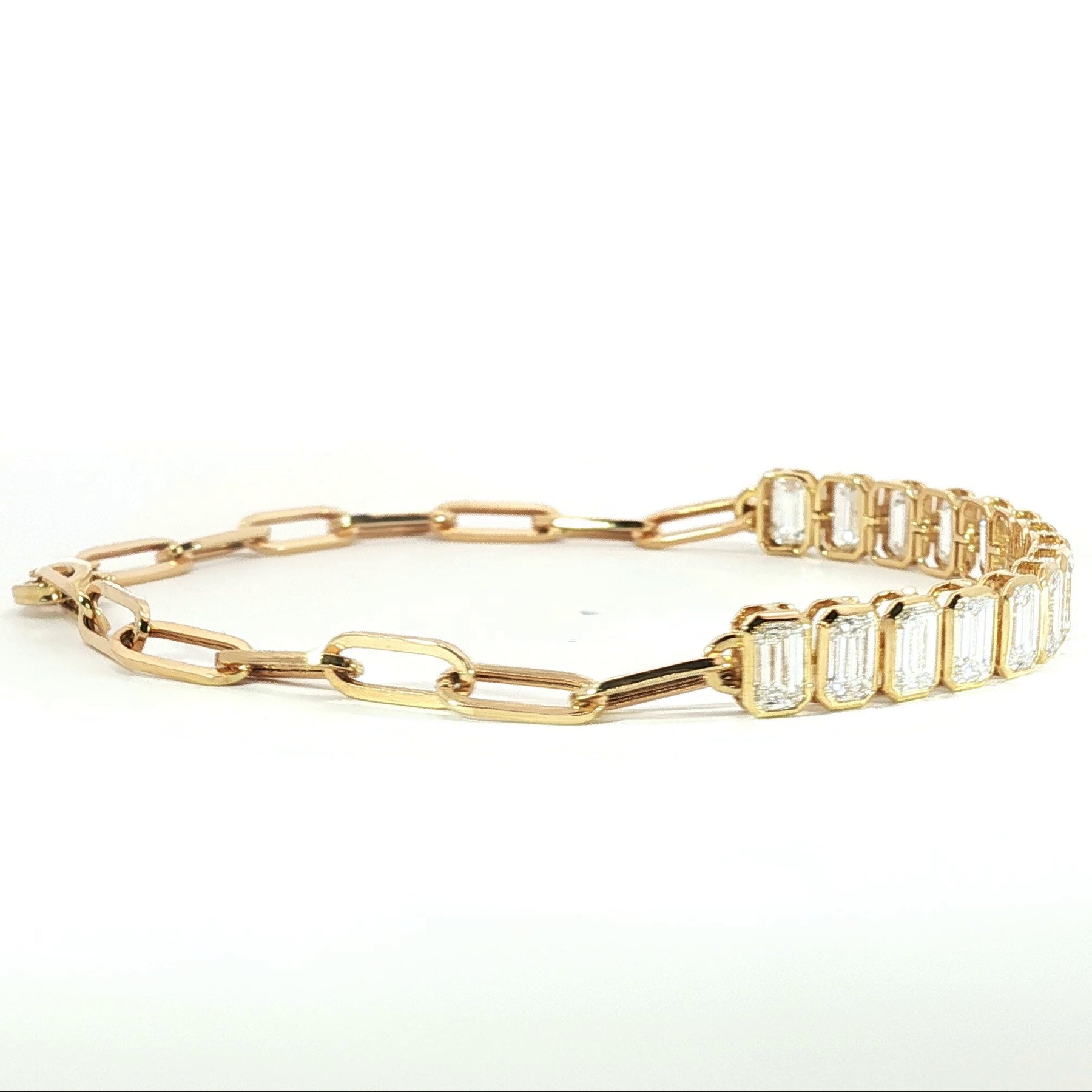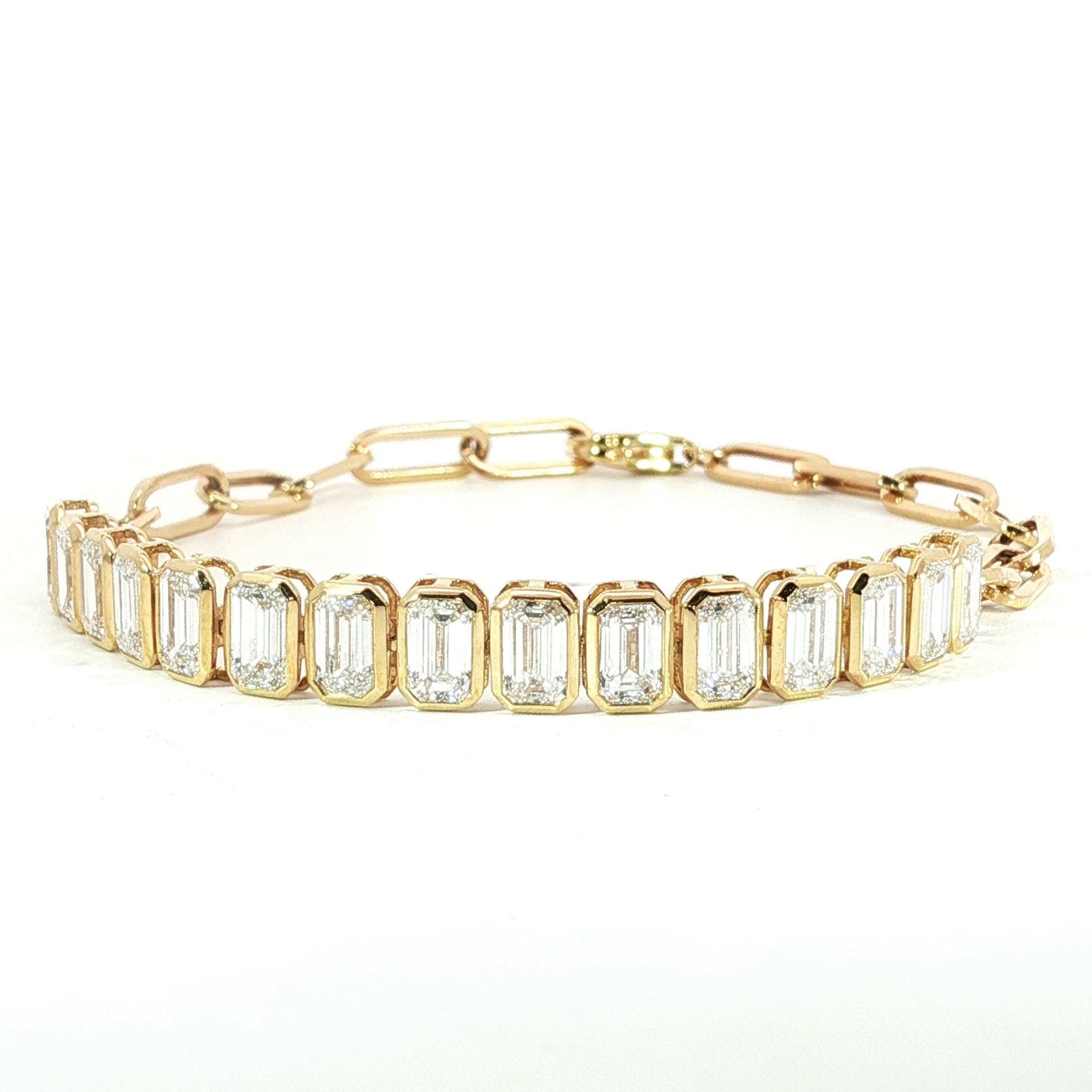 Crafted in lustrous 18K yellow gold, this piece showcases 15pcs. emerald-cut lab-grown diamonds weighing 4.74tcw. Each gem reflects exceptional DEF color and VVS–VS clarity, delivering a radiant, polished look. The perfect blend of modern sophistication and classic style.