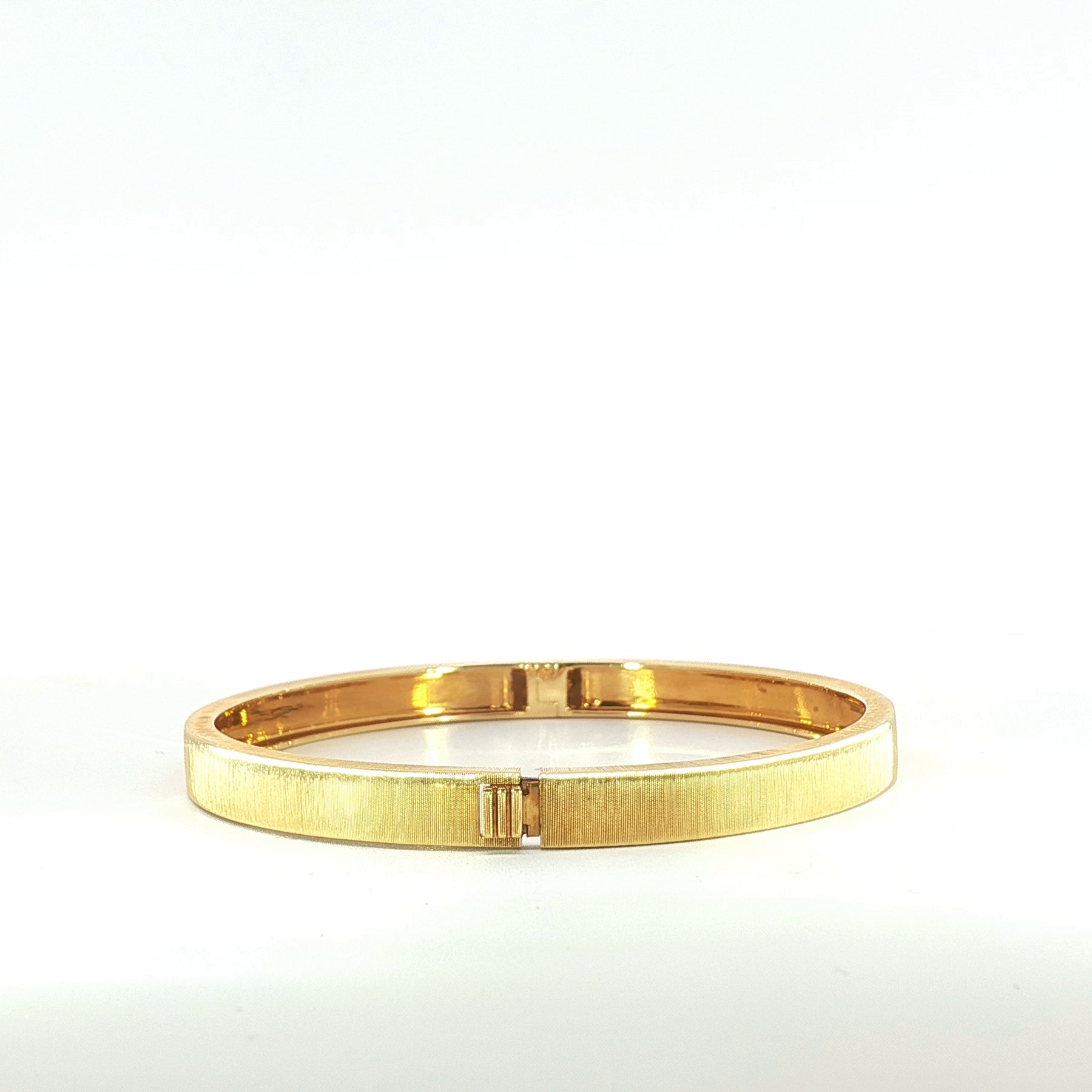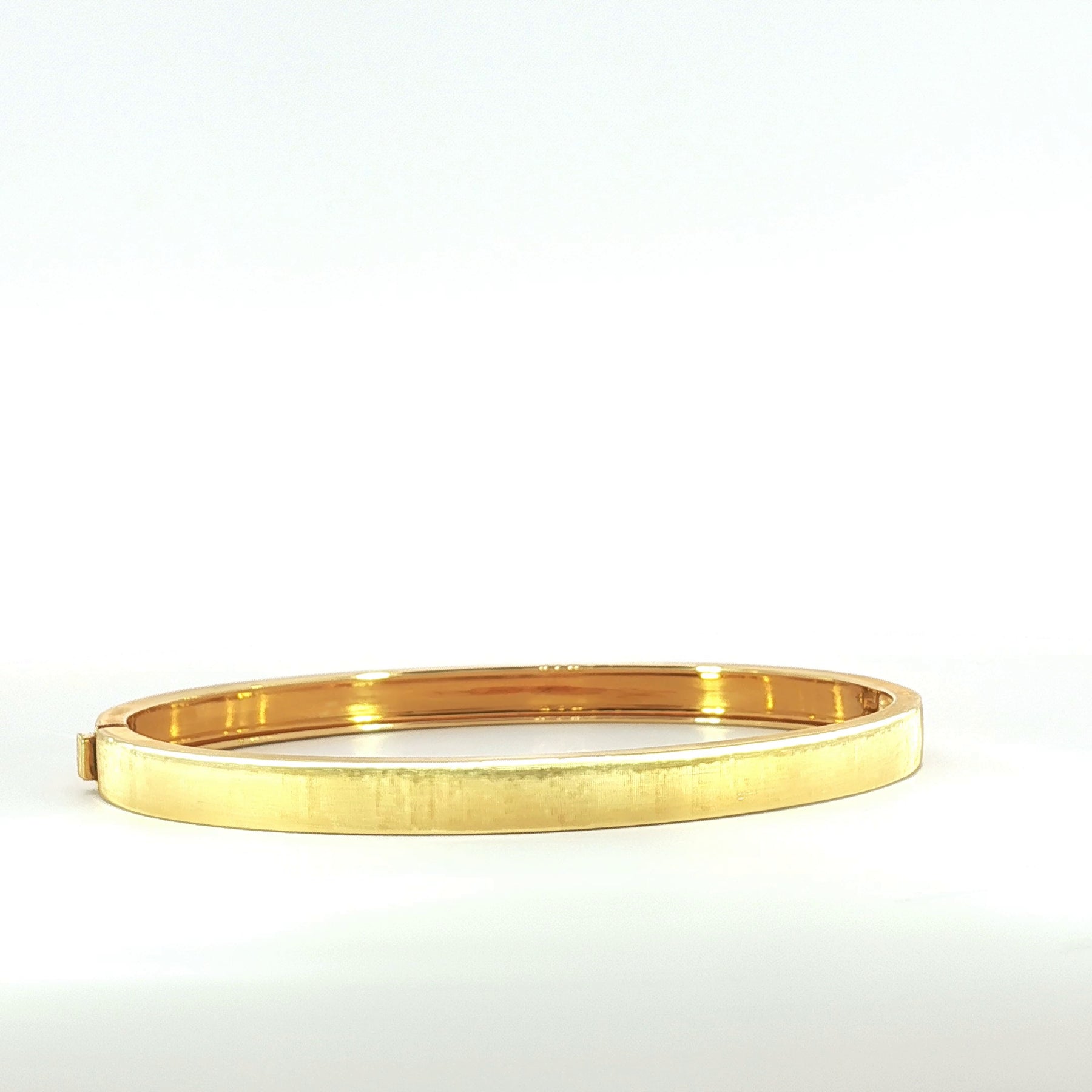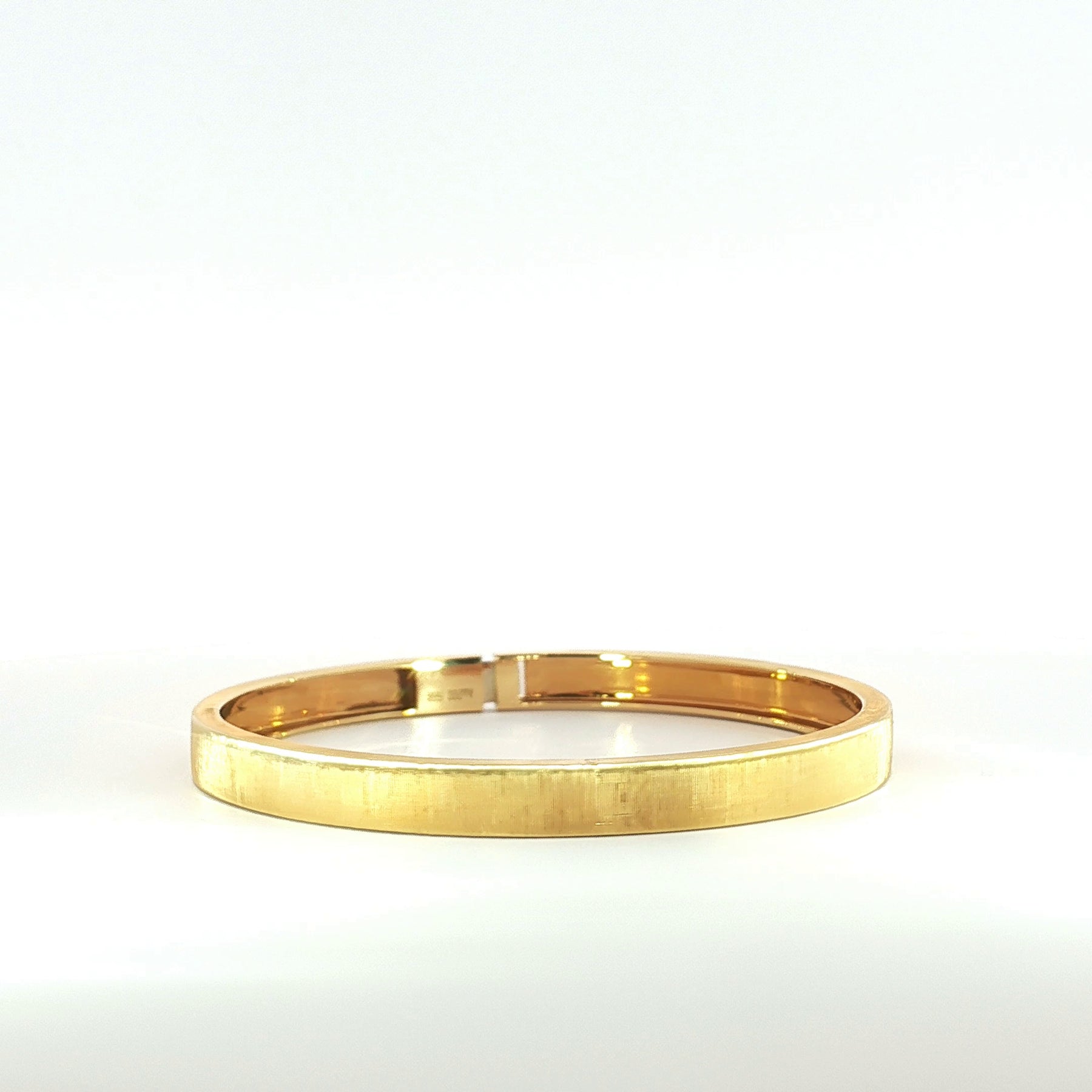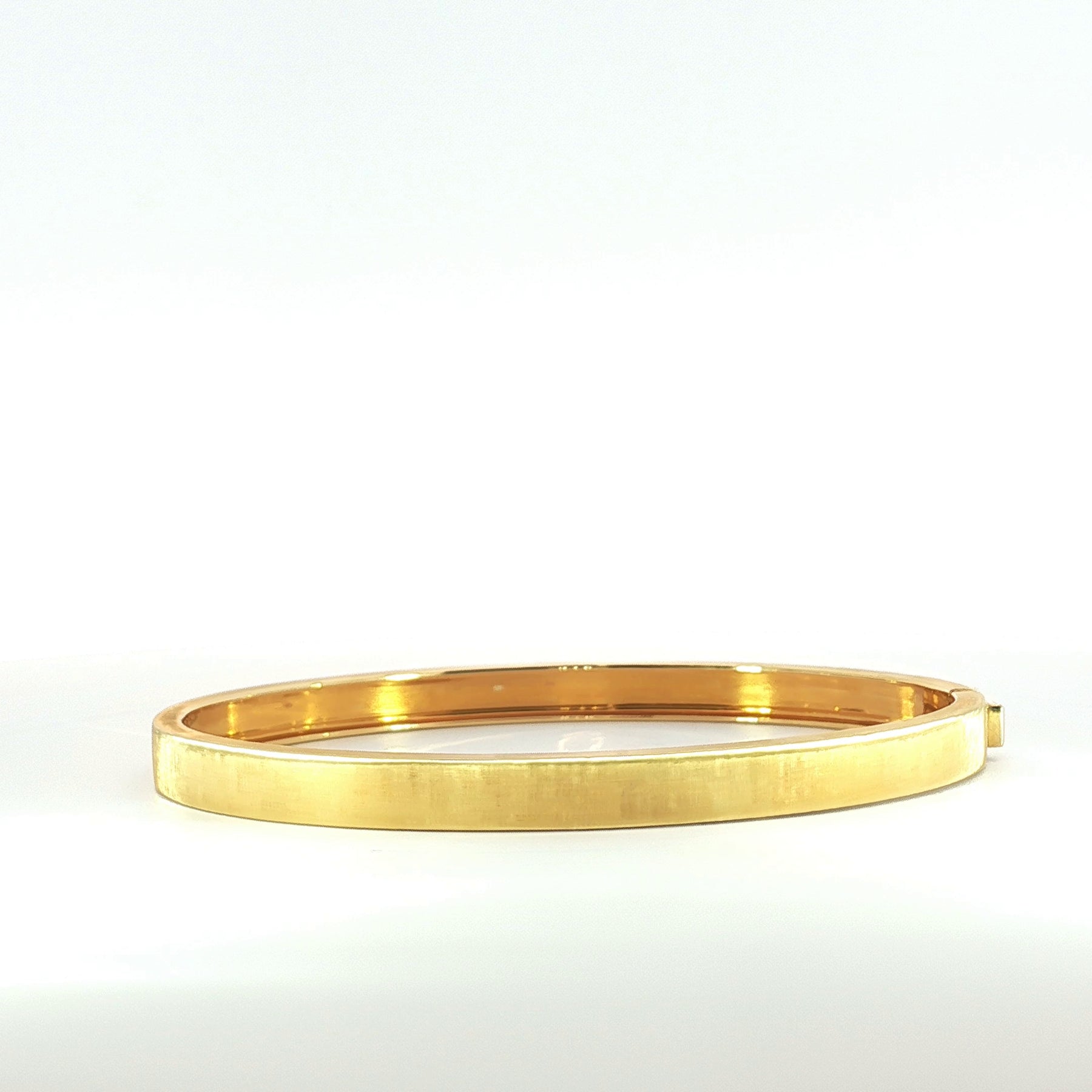 Exquisitely crafted in 18k yellow gold, this plain brushed bangle embodies understated luxury and timeless refinement.