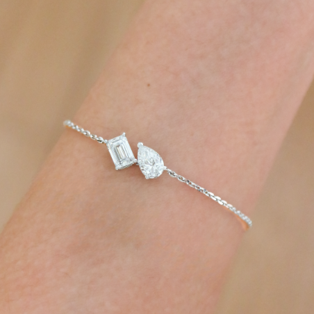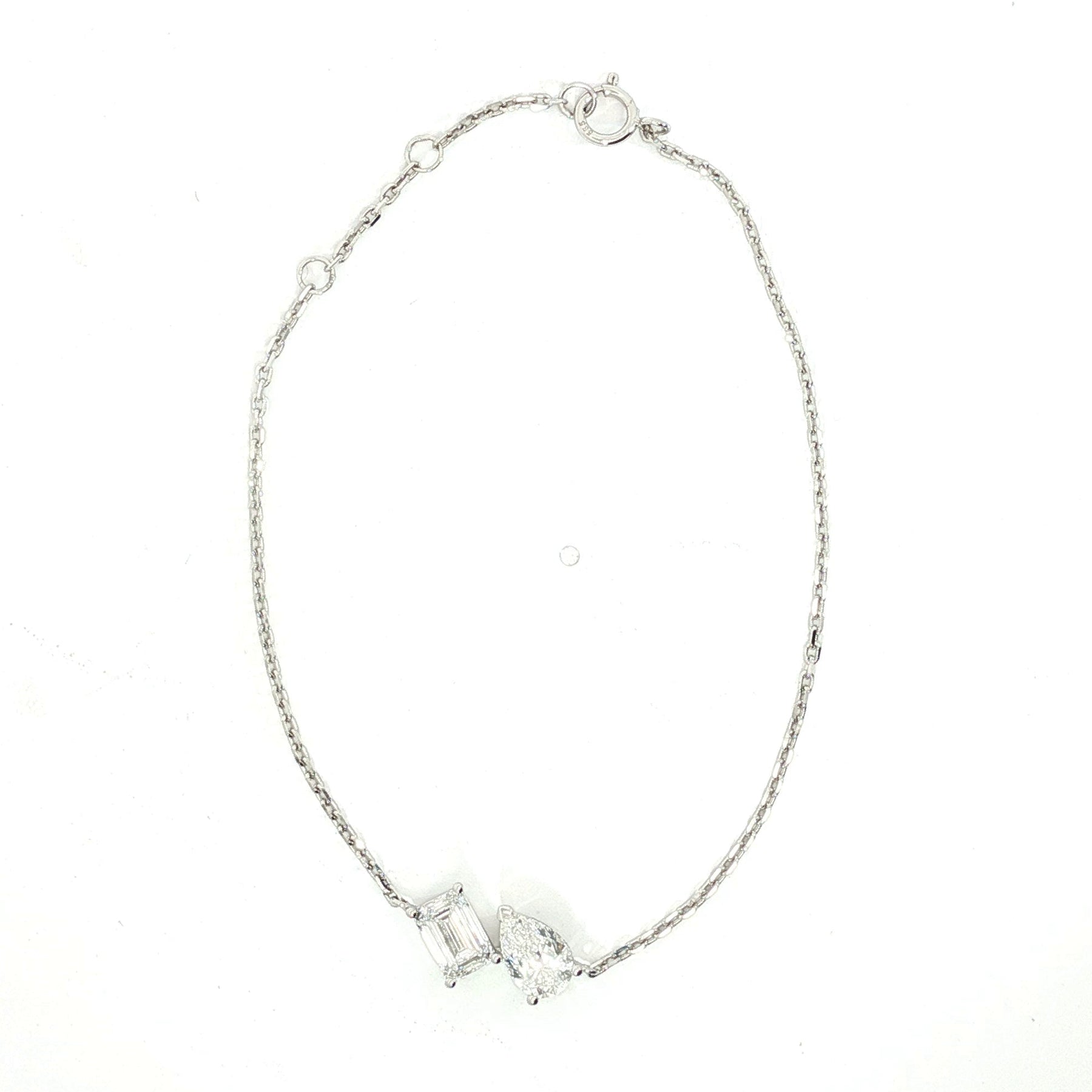 Crafted in 14K white gold, this 7-inch bracelet showcases 1.46tcw of emerald and pear-cut lab-grown diamonds. With DEF color and VVS–VS clarity, it delivers brilliance and graceful movement. Perfect for elevating everyday style or special occasions.