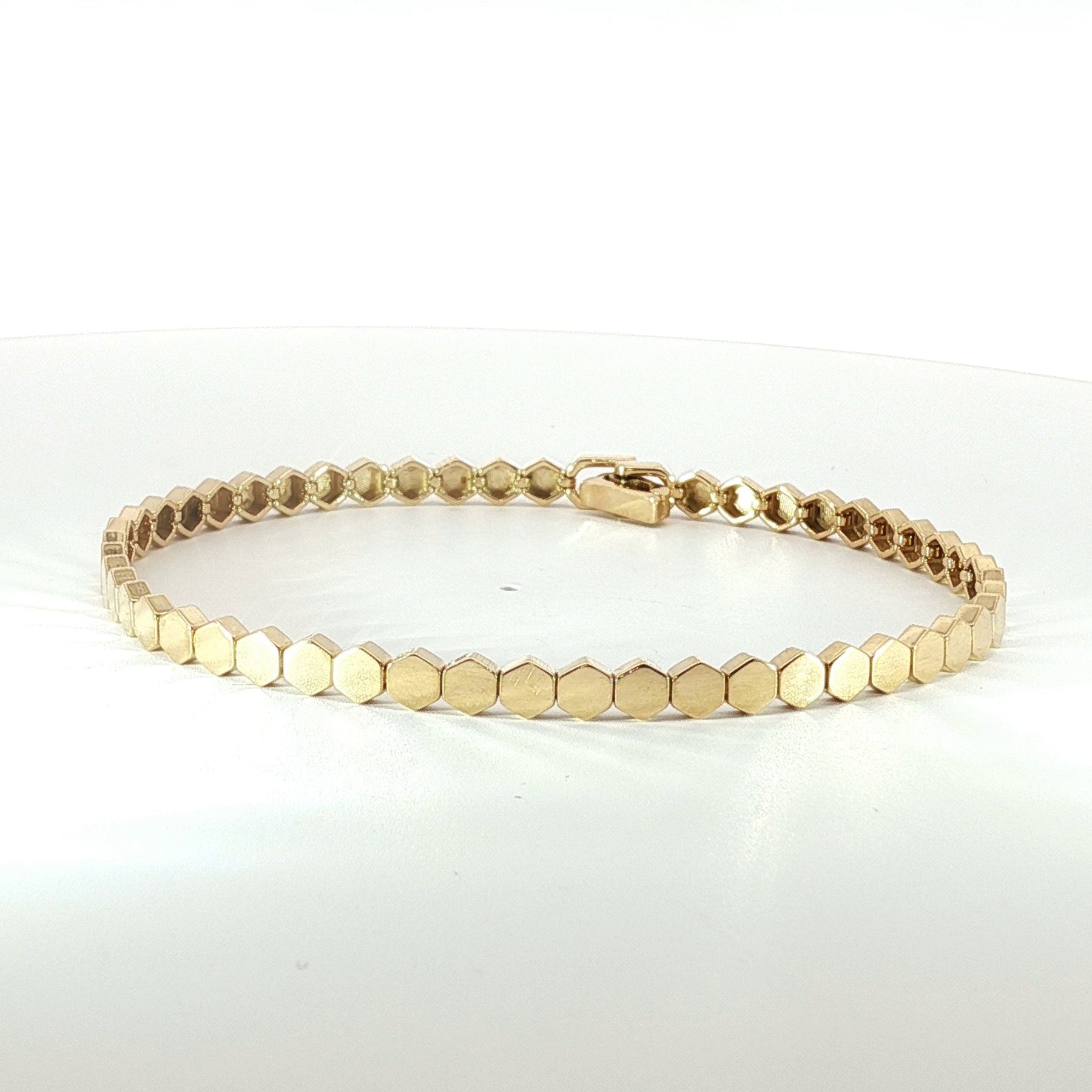 A sleek 7-inch honeycomb bracelet in rich 18k yellow gold, weighing 6.14g. Its geometric pattern adds a modern, elegant touch with a warm golden glow.