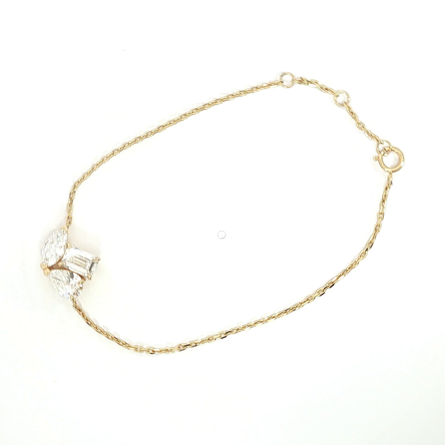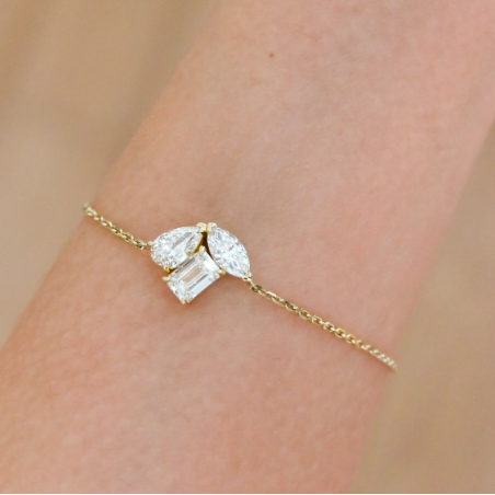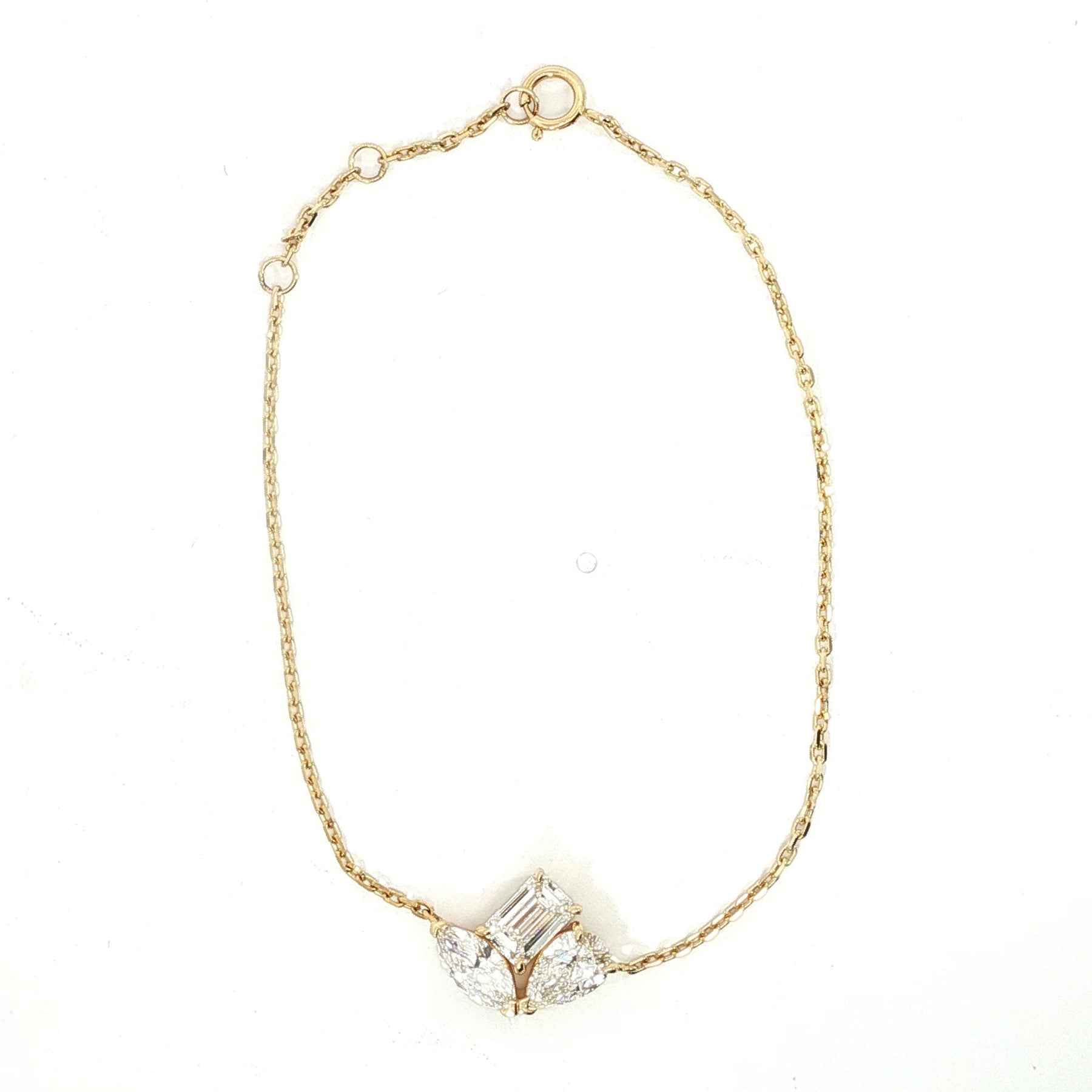A stunning 7-inch 14K yellow gold bracelet adorned with 2.04tcw of emerald, marquise, and pear-cut lab-grown diamonds. Each gem reflects exceptional DEF VVS–VS quality for maximum sparkle. A graceful and luxurious addition to any jewelry collection.