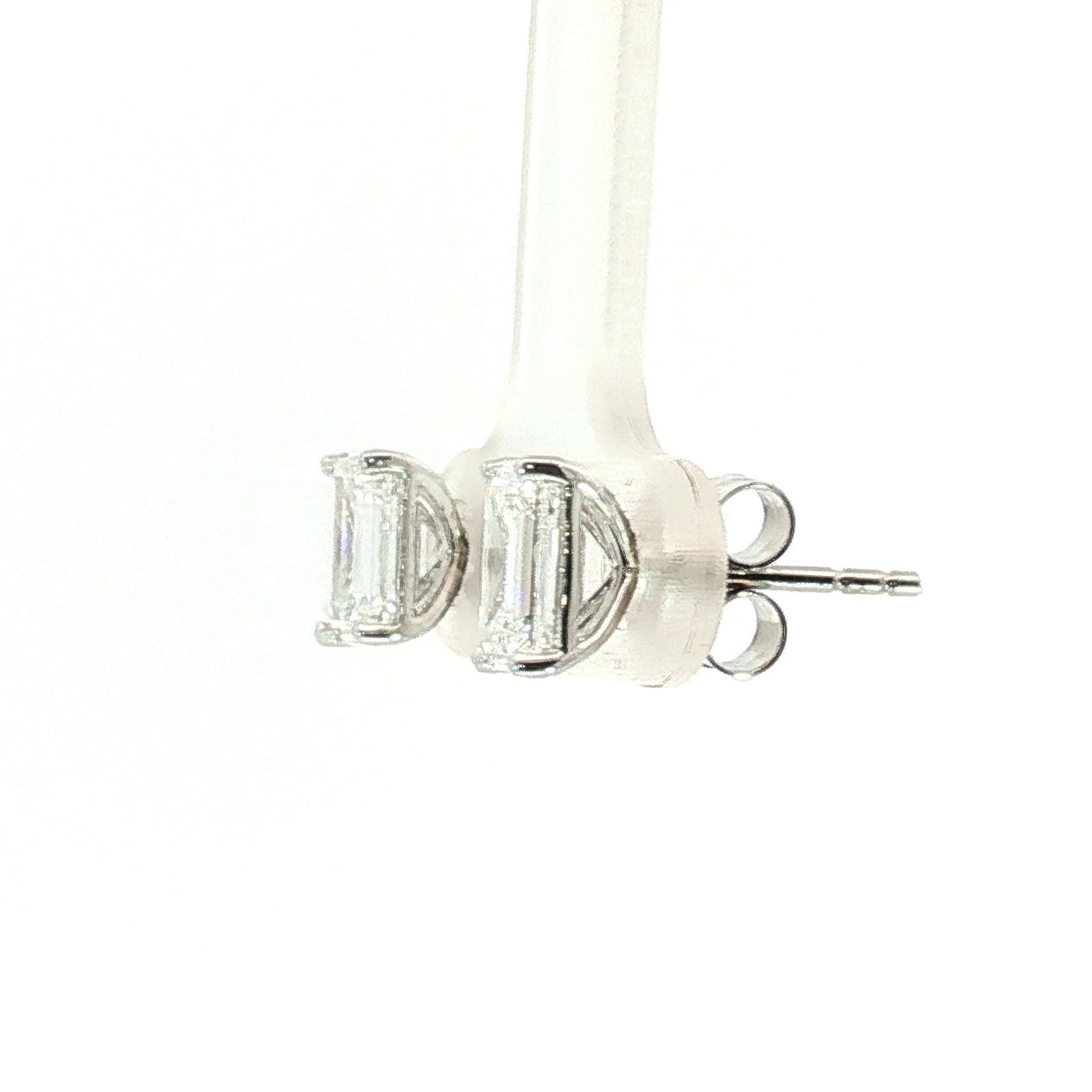 A flawless pair of IGI-certified 1.08ct E VS1 emerald-cut lab-grown diamonds, radiating exceptional clarity and refined symmetry, beautifully set in 18k white gold.