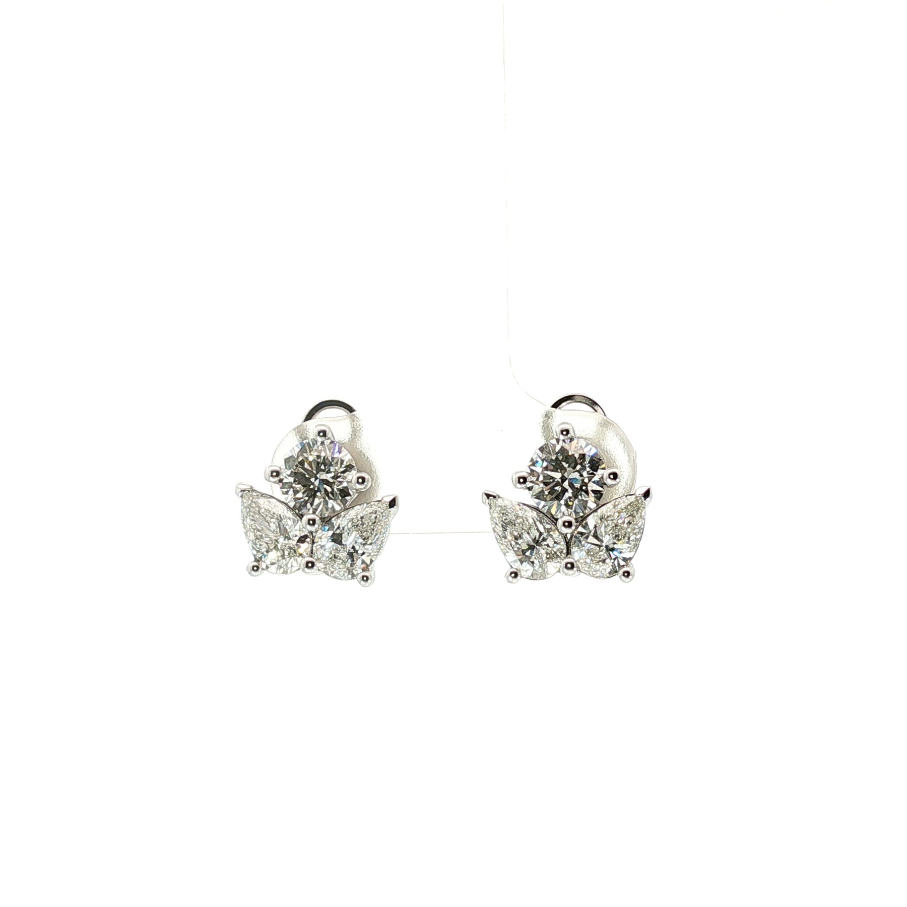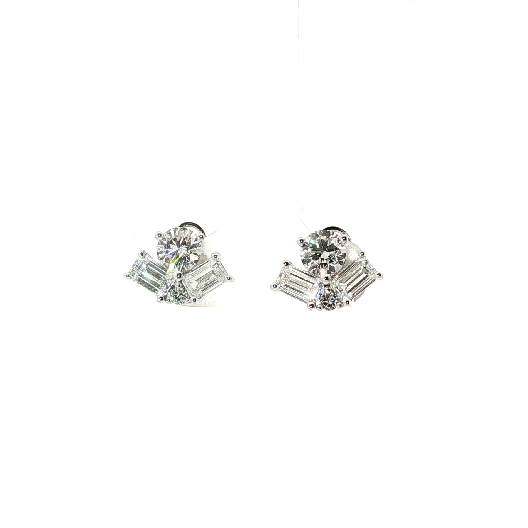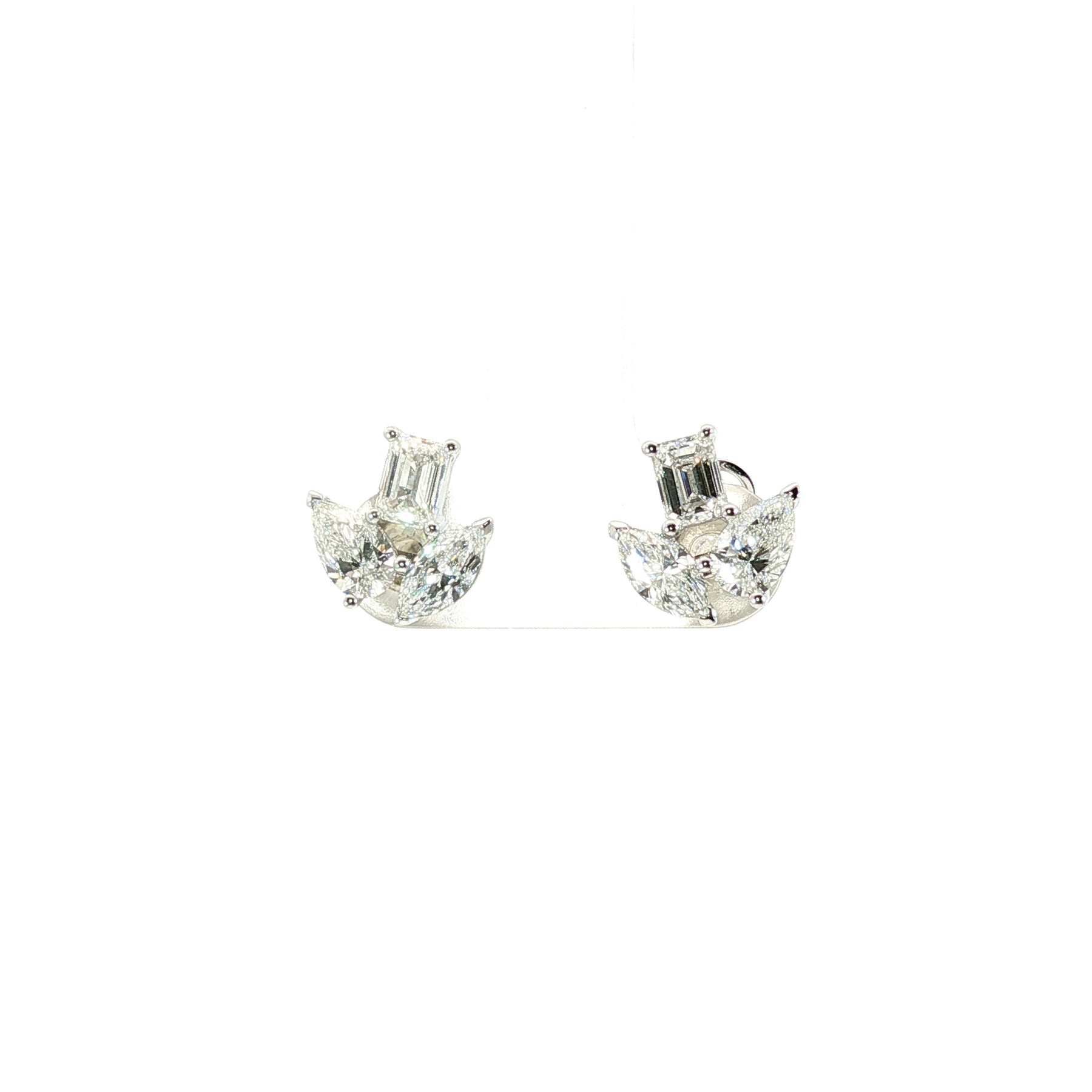 A masterpiece of modern elegance and brilliant craftsmanship, these Emerald, Marquise, and Pear/Round Cut Diamond Cluster Earrings are exquisitely designed in luminous 14K white gold. Each earring showcases a stunning arrangement of DEF color, VVS–VS clarity lab-grown diamonds, meticulously selected for their exceptional purity, fire, and sparkle. The combination of geometric emerald cuts, gracefully elongated marquise stones, and soft pear/round accents creates a harmonious cluster that glimmers with depth, dimension, and timeless beauty.