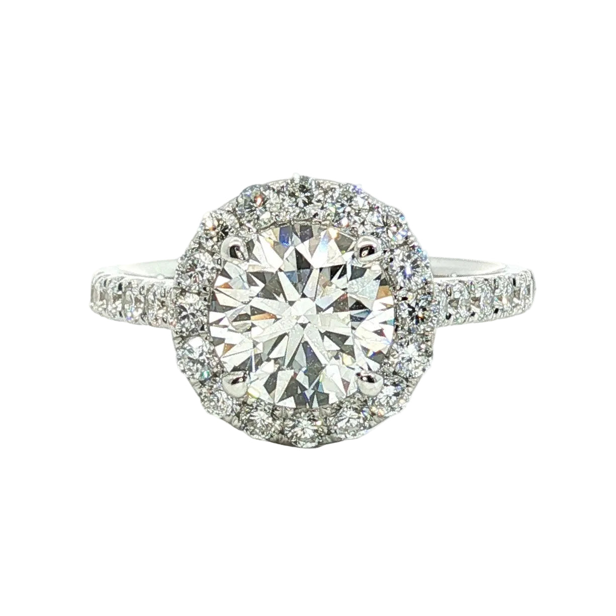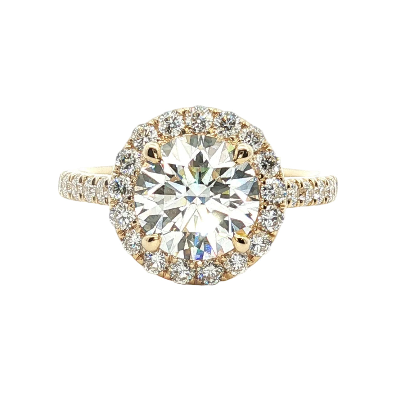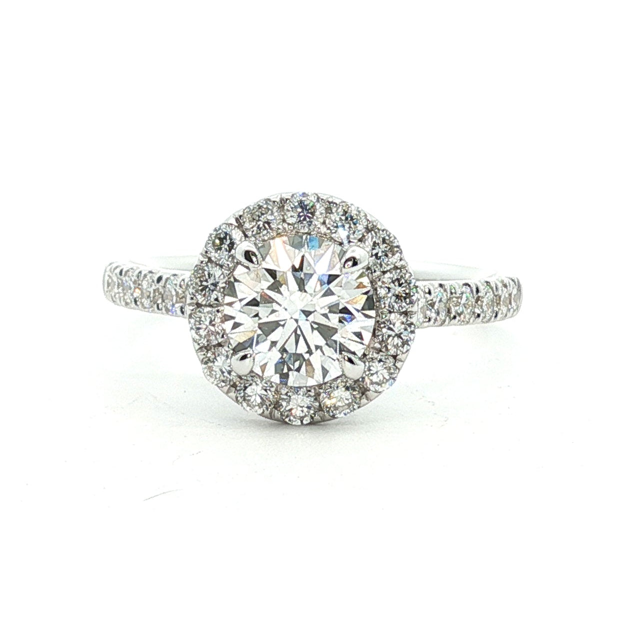 A timeless symbol of love, this engagement ring features a dazzling center stone complemented by delicate pavé side stones that shimmer along the band. Each small diamond is meticulously set to enhance the brilliance of the centerpiece, creating a radiant sparkle from every angle. Elegant, refined, and effortlessly romantic, this ring is designed to celebrate a lifetime of love.