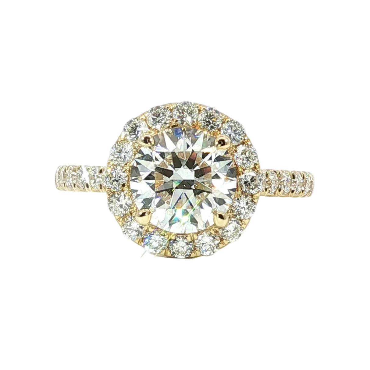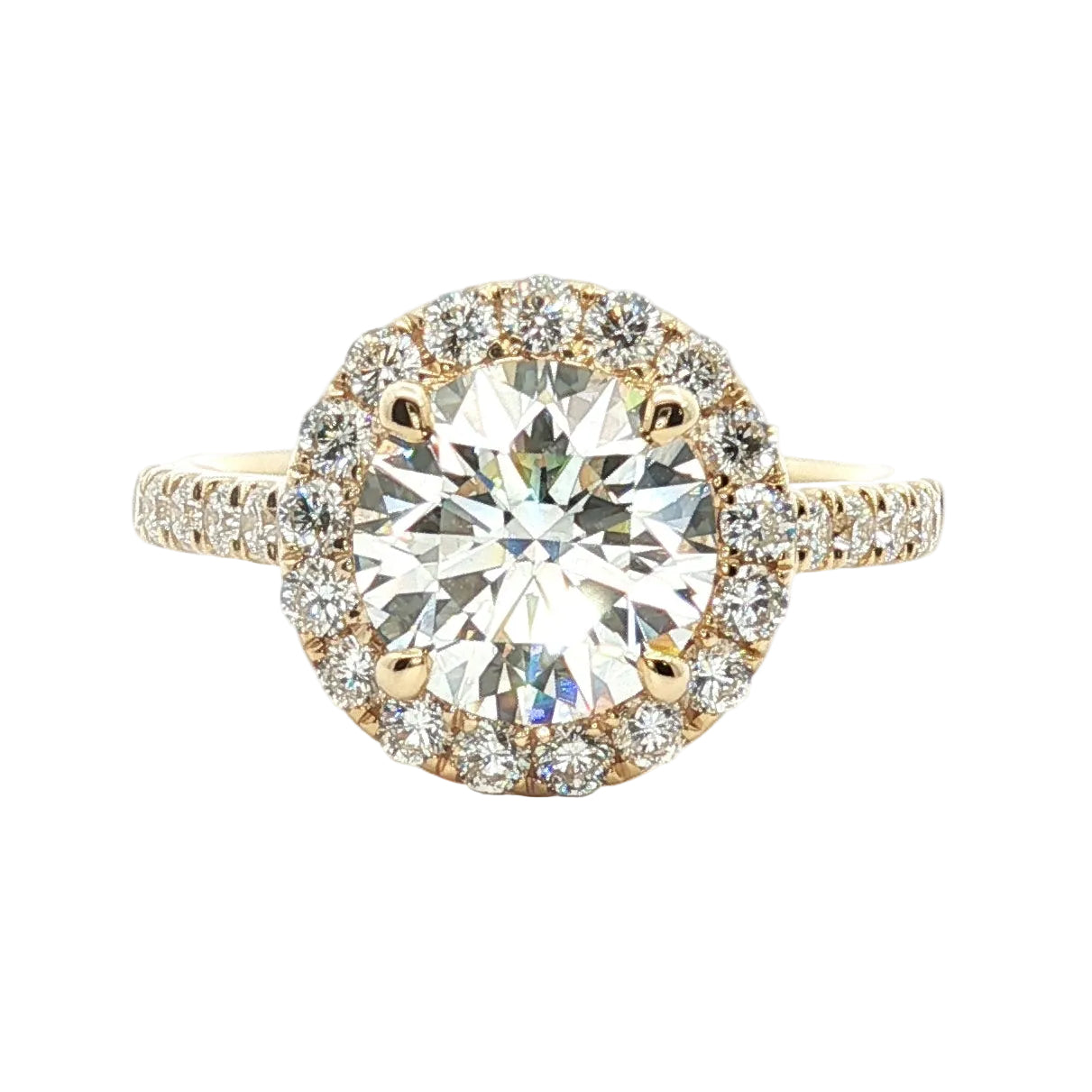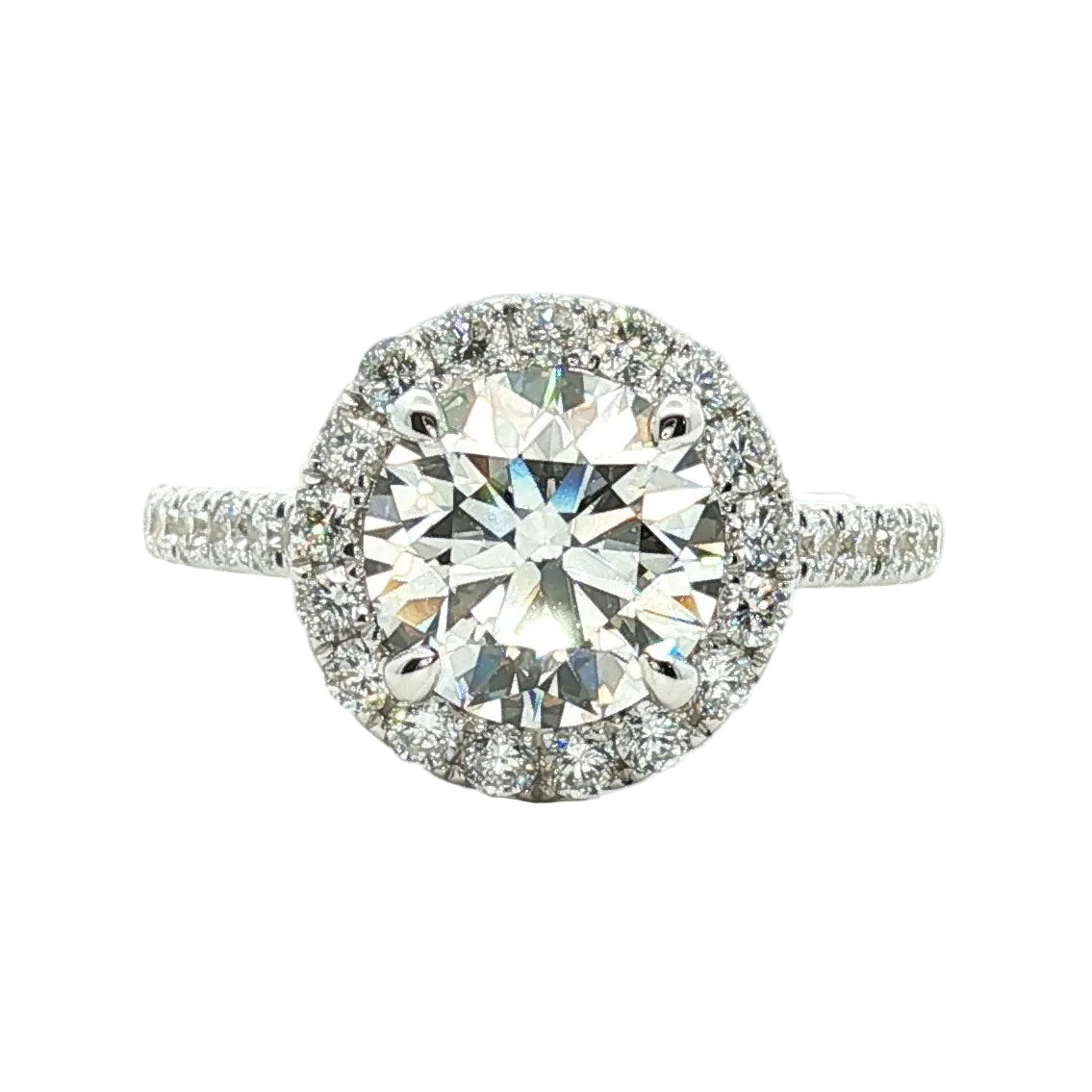 A timeless symbol of love, this engagement ring features a dazzling center stone complemented by delicate pavé side stones that shimmer along the band. Each small diamond is meticulously set to enhance the brilliance of the centerpiece, creating a radiant sparkle from every angle. Elegant, refined, and effortlessly romantic, this ring is designed to celebrate a lifetime of love.