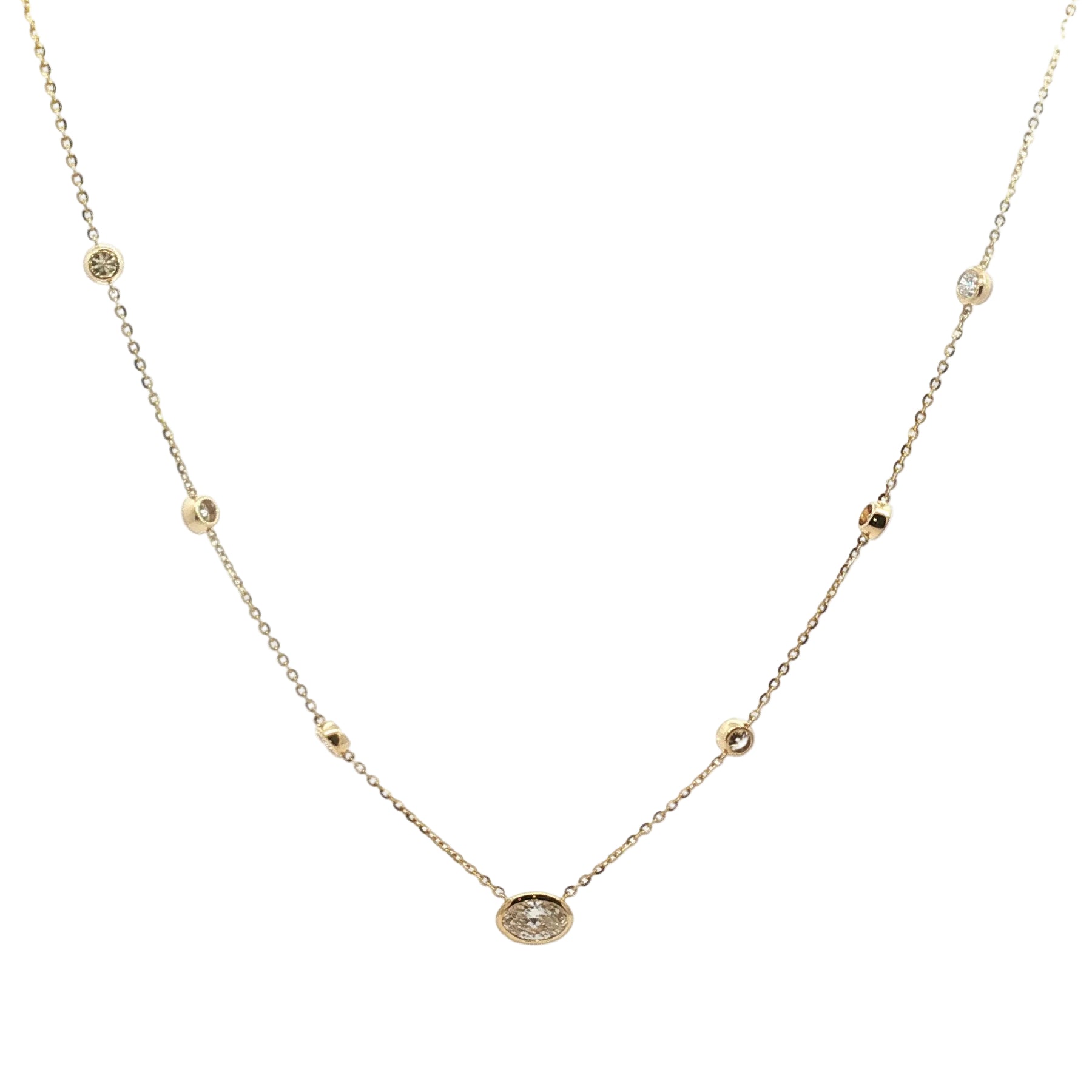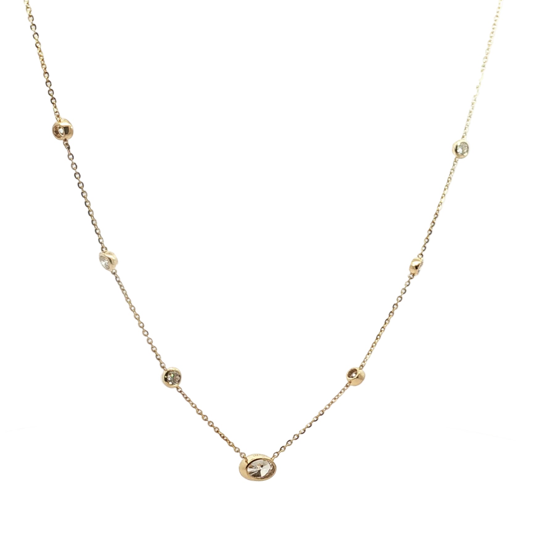 This exquisite necklace features a radiant gemstone secured in a sleek bezel setting, designed to enhance brilliance while offering a smooth, modern silhouette. The clean lines of the bezel gently frame the stone, allowing its natural beauty to take center stage while providing lasting durability and comfort. Perfect for everyday elegance or special occasions, this timeless piece blends sophistication with contemporary design—an effortless expression of refined style.