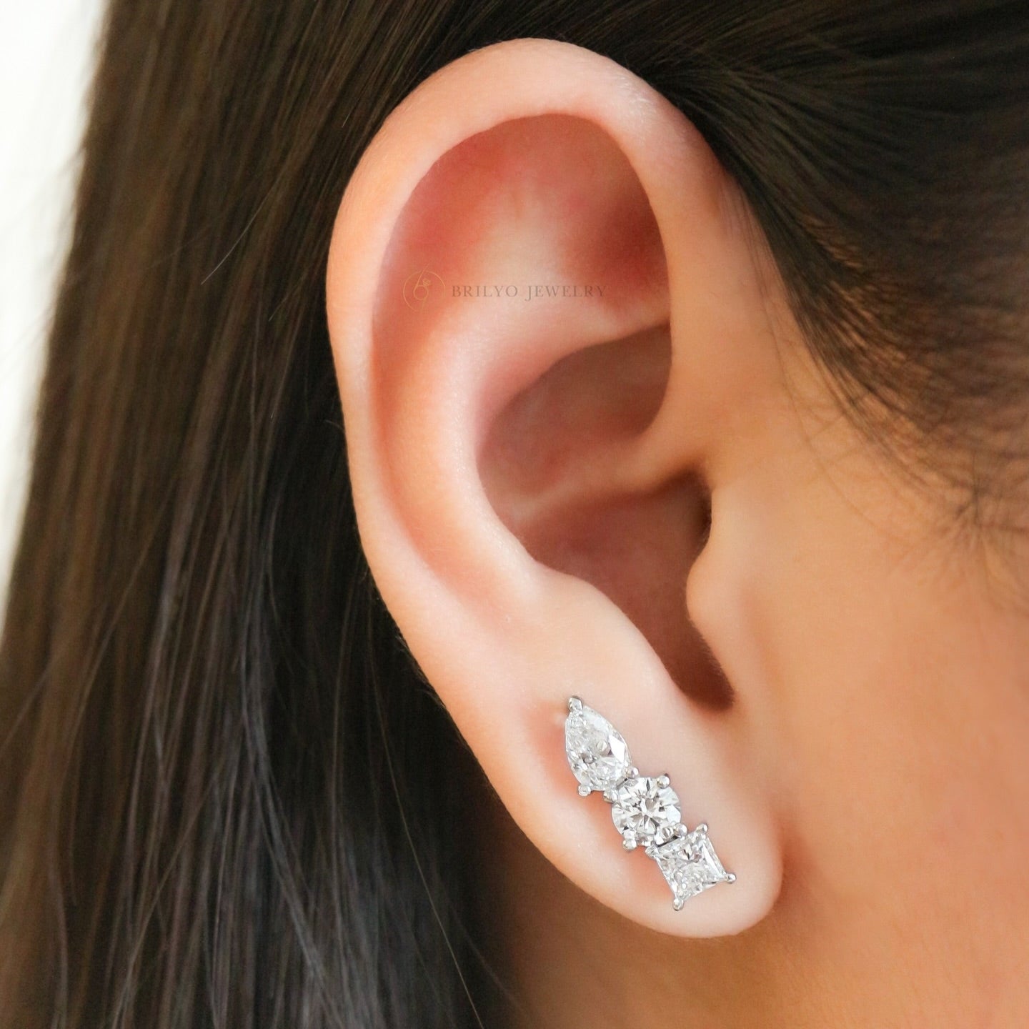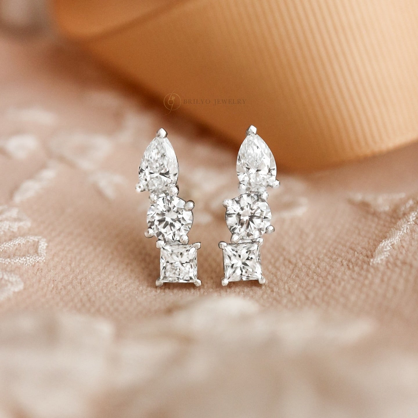 A cascade of light — 2.50tcw of multi-shape DEF VVS-VS diamonds dance in perfect harmony. These earrings speak of elegance, brilliance, and beauty in every facet.