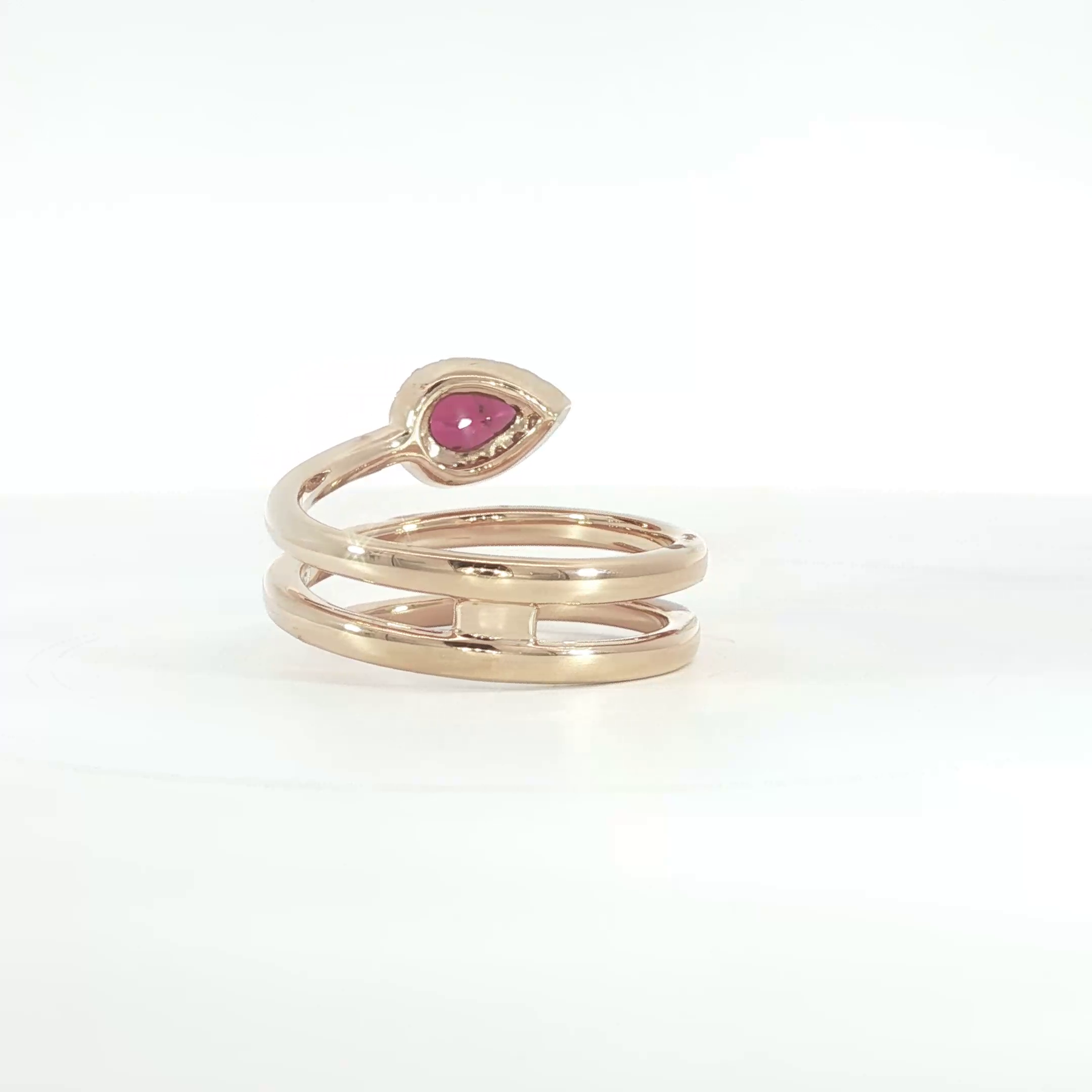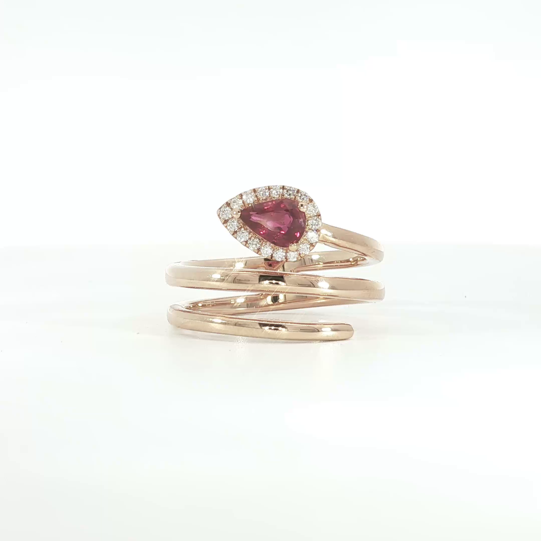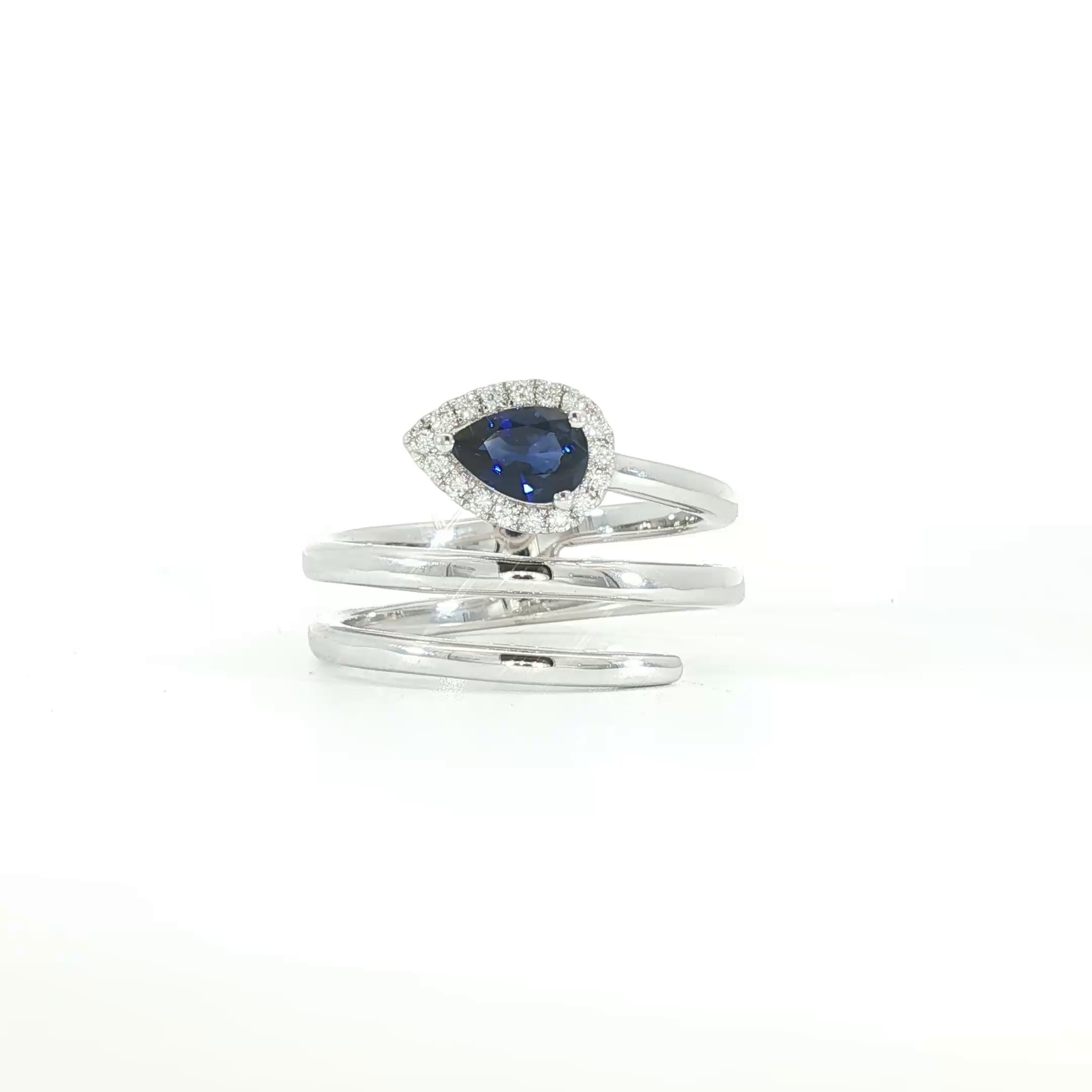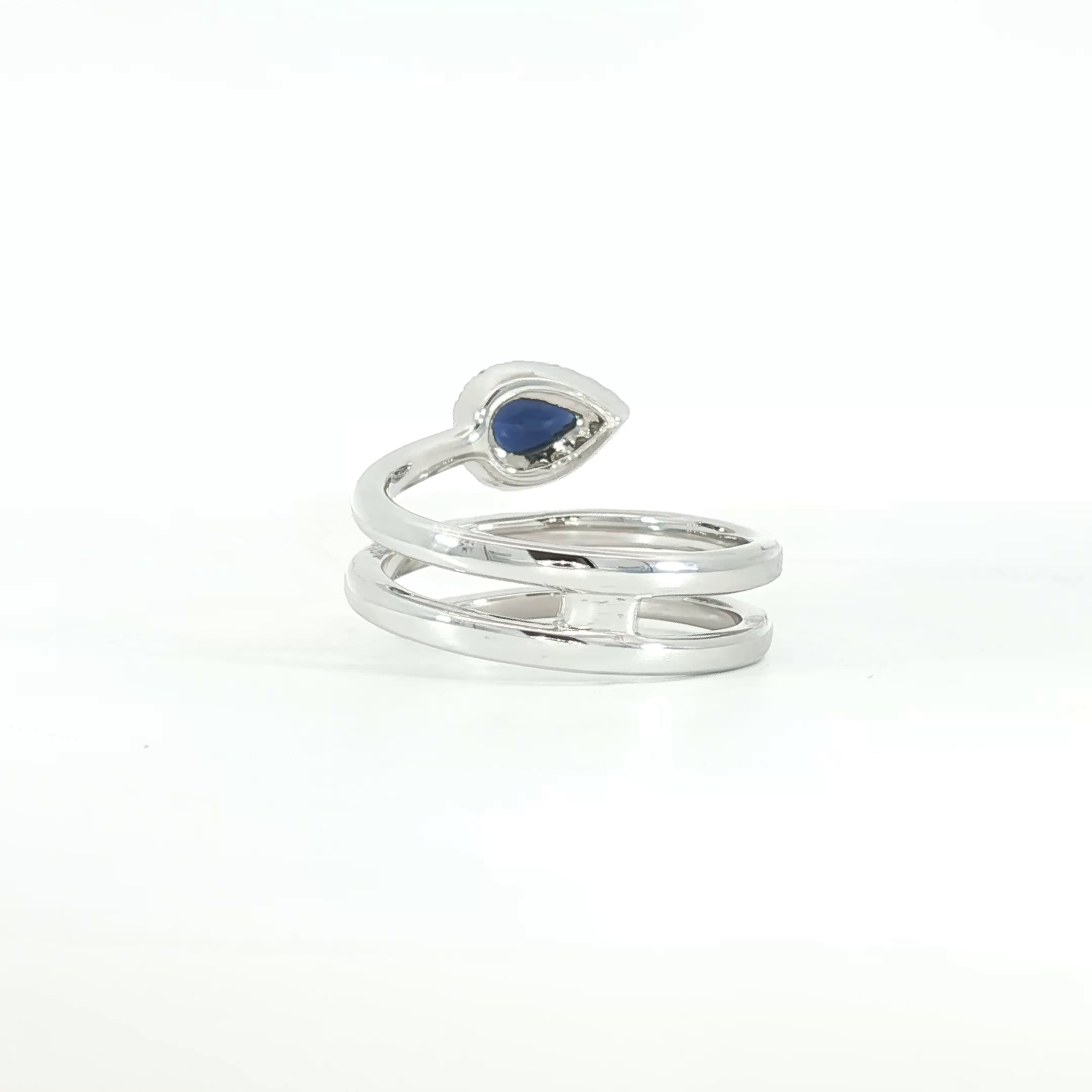 An enchanting design that coils with grace, featuring a pear-cut natural sapphire embraced by shimmering GH VS round earth-mined diamonds — a piece that radiates sophistication and timeless allure.